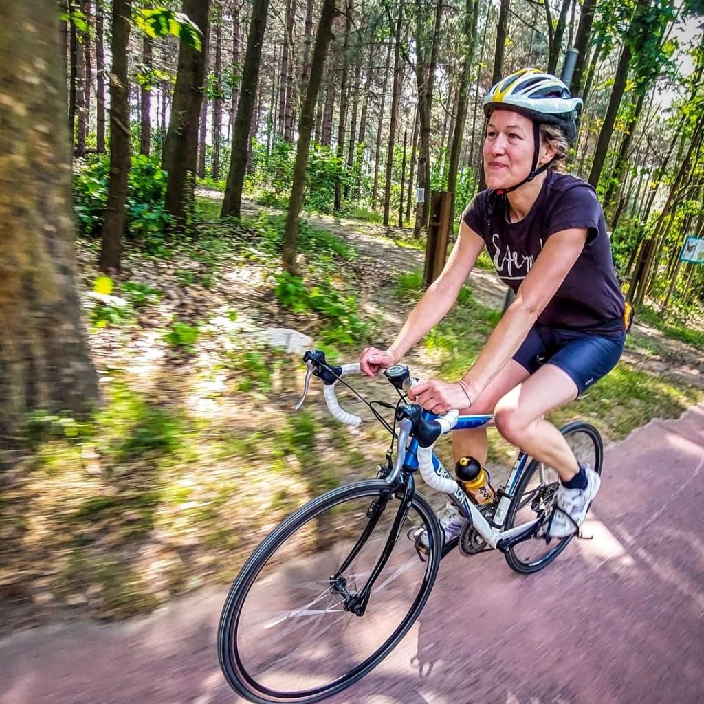 Zo volgde ik als kind een paar jaar tekenschool, dan weer een paar jaar toneel. En als volwassene deed ik 2 jaar ballet, dan weer een tienlessenreeks yoga en daarna een jaar lindy hop. Af en toe kruip ik eens op mijn koersfiets (zo moest ik echt héél diep in mijn archief graven om een foto van mij op de koersfiets te vinden om bij deze blogpost te plaatsen) en nog veel minder af en toe haal ik mijn inline skates eens uit de kast.