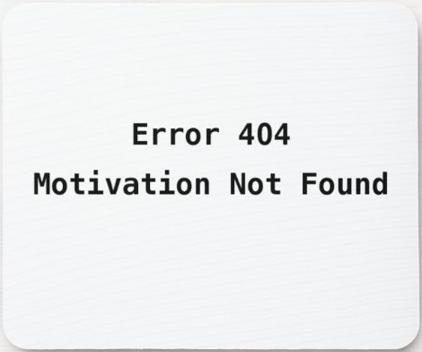 Error 404 – Motivation not found. De titel van het gifje dat ik vanmorgen naar mijn lief stuurde, vlak nadat de wekker ging. Ik. Wil. Niet.